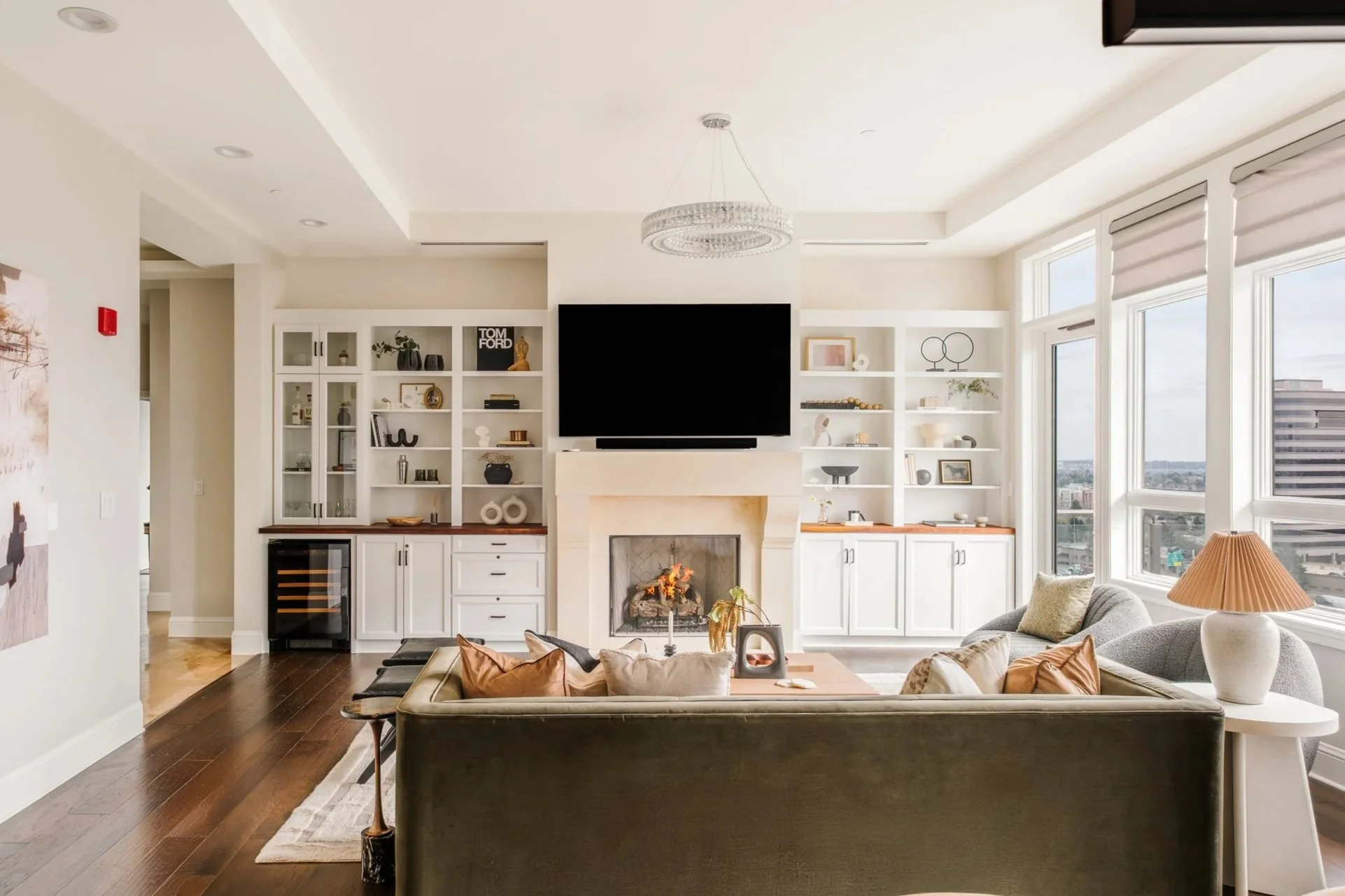 Experience refined luxury in this meticulously remodeled 3-bedroom, 3-bath residence offering over 2,000 square feet at The Landmark. Every detail has been thoughtfully curated to blend comfort, style, and modern convenience. Wide-plank wood floors lead into an elegant living space anchored by new custom built-in cabinets and bookcases surrounding a stately gas fireplace, complete with a EuroCave wine refrigerator. All surfaces—including trim—have been freshly painted, and new designer lighting, chandeliers, and flush-mounted LED cans illuminate every room.